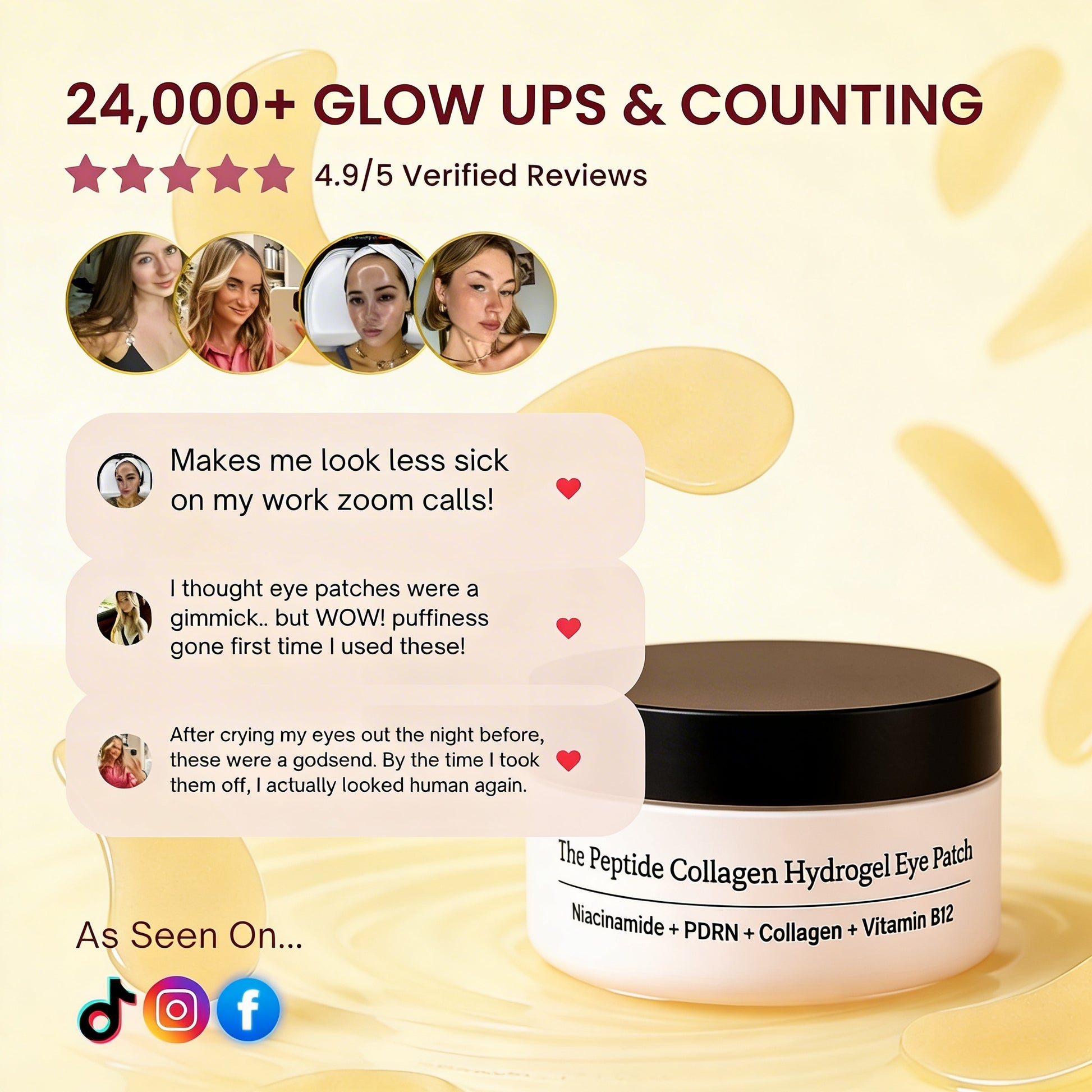 “I stayed up late with the kids and looked exhausted the next morning. These patches made a huge difference. My under-eyes looked smoother and brighter, and for once nobody told me I looked tired.”